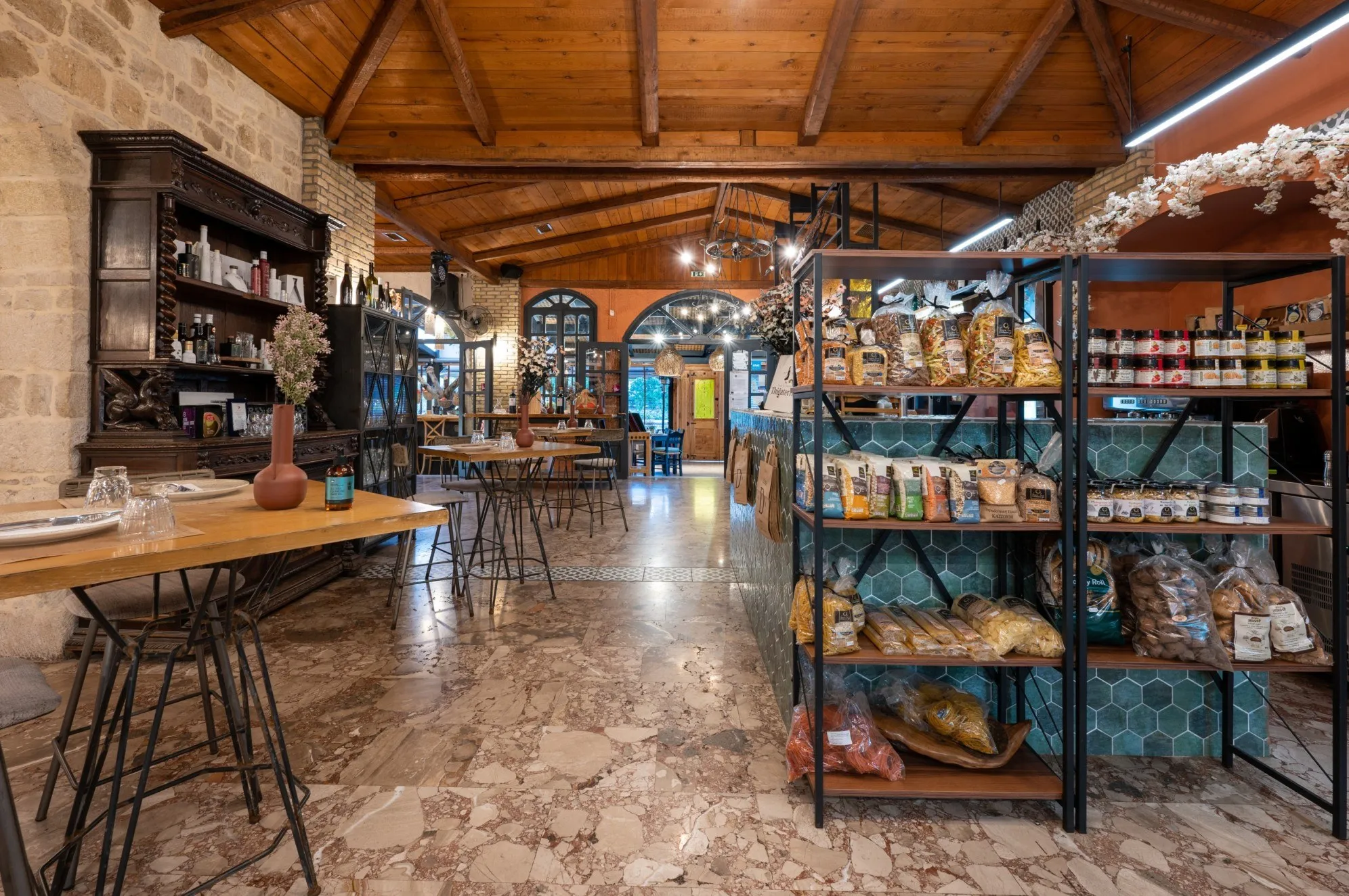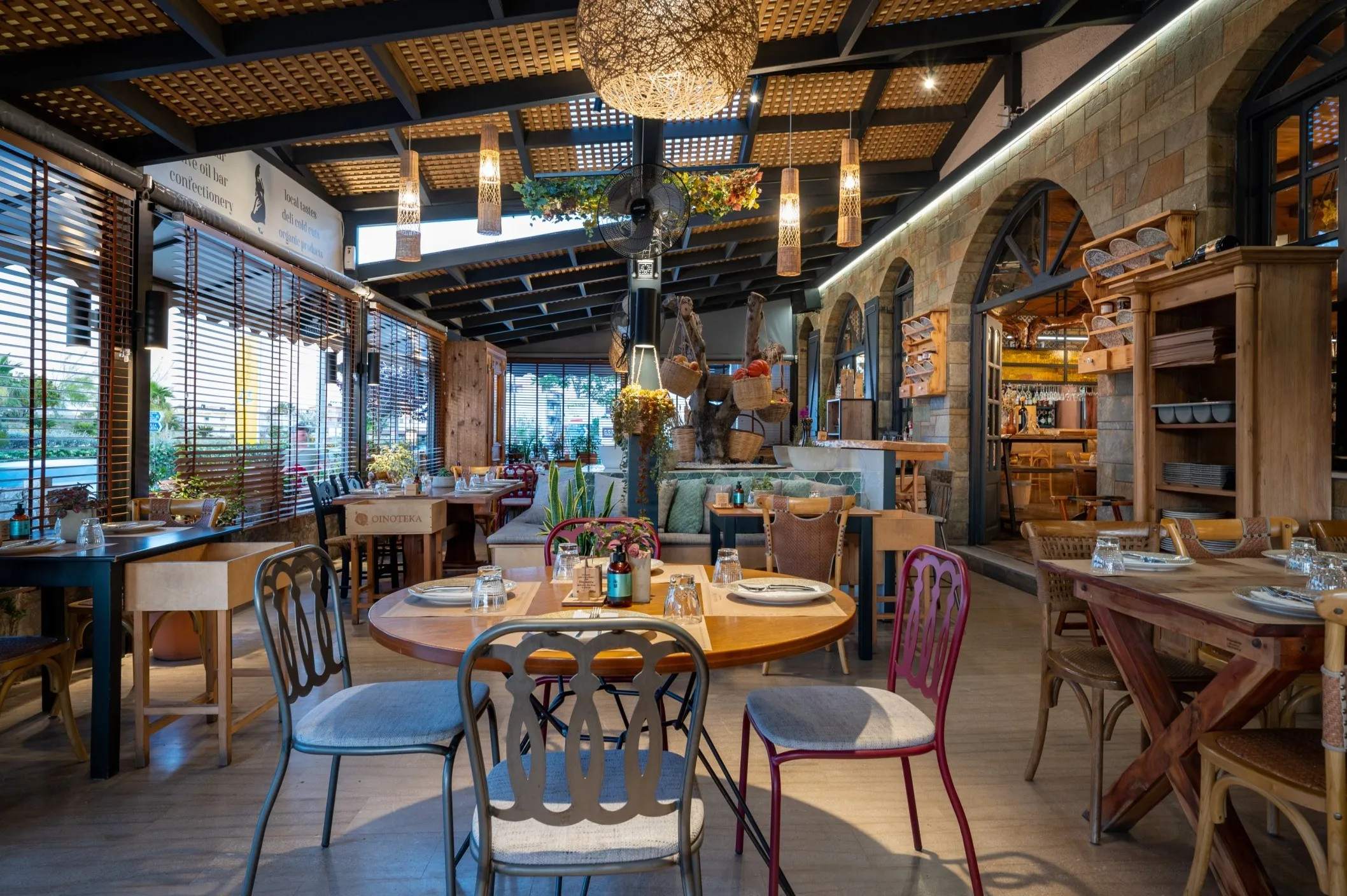 Thigaterra's restaurant space uniquely combines traditional aesthetics with modern touches, creating an environment that enchants its guests. The combination of stone, wood and mosaic offers a special sense of authenticity and warmth, making every visitor feel at home
