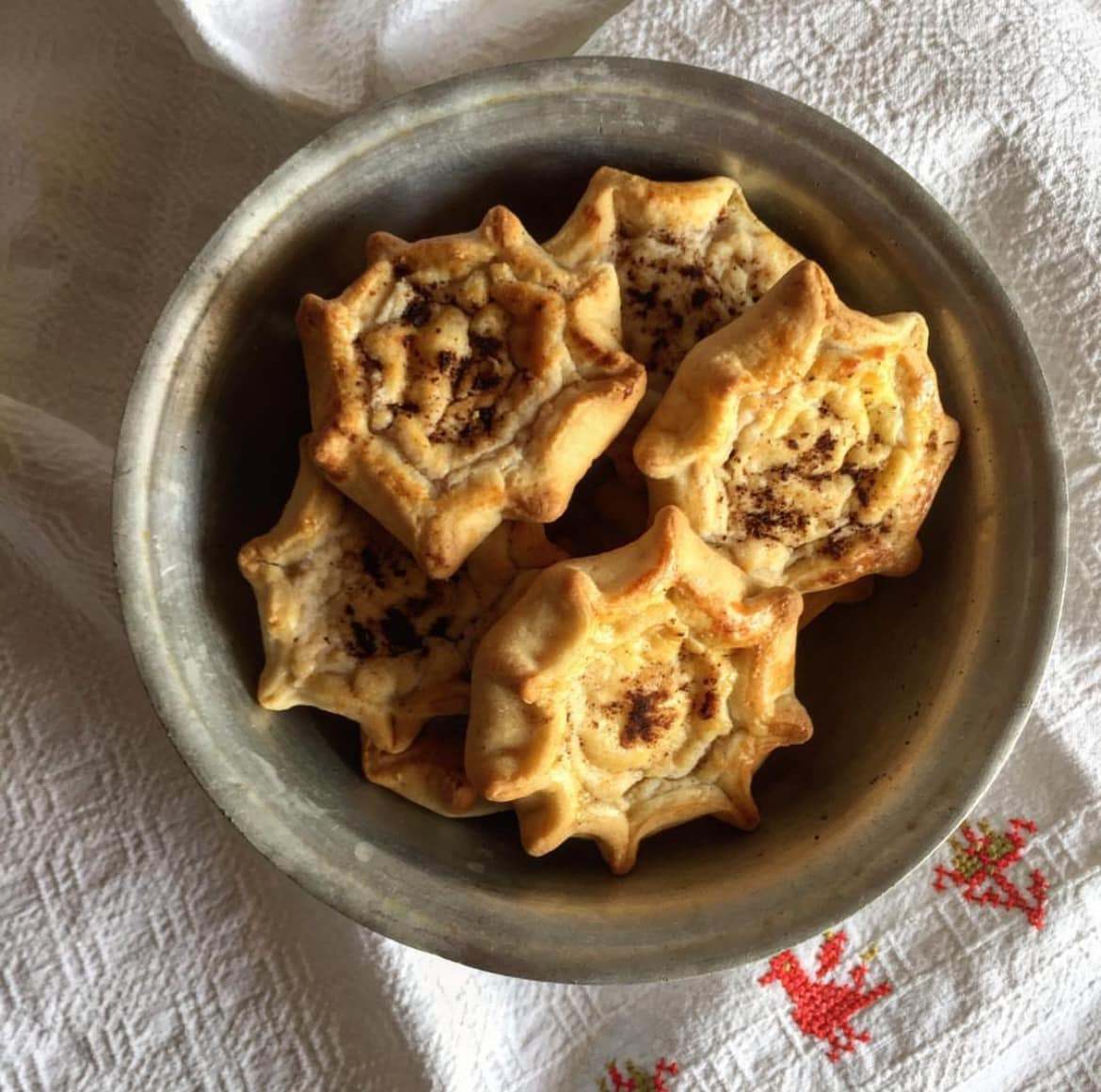 Lychnarakia are the traditional Easter pastry of Crete, a staple on the festive table of Lambri (Easter Sunday). On the morning of Holy Saturday, Cretan homemakers roll out dough on a sofás (a low, round kneading table), cut small circles, place a spoonful of sweet myzithra cheese in the center, and—using an almost artistic touch—pinch the edges into delicate pleats.