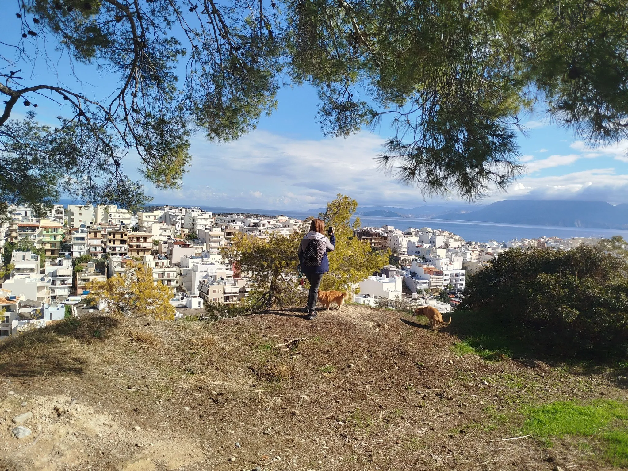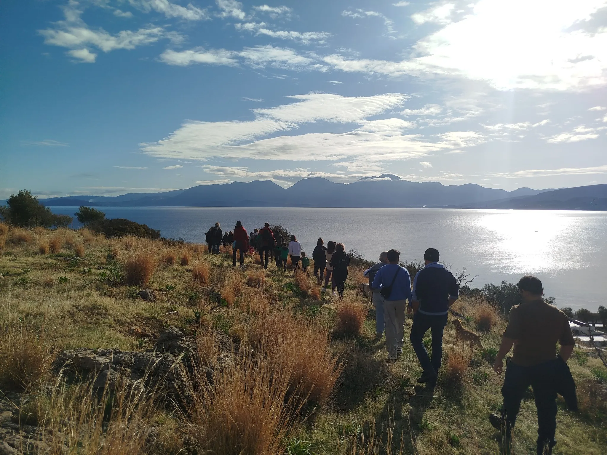With our guide, the veteran club member Leonidas Klontzas—who knows the city like the back of his hand—we started at the familiar meeting point outside the AB Supermarket. Heading southeast, we ascended Nomia Hill. The rain-soaked grass and puddles from the previous night’s downpour sparkled under the bright morning sun, creating a magical atmosphere. From this vantage point, we enjoyed stunning views of the Mirabello Bay and the mist-shrouded peaks of the Lasithi and Thripti mountains.