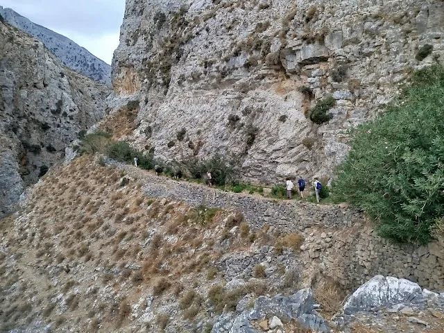 “The hike will start at the ancient olive tree of Kavousi. From there, we’ll walk briefly along the provincial road towards Panagia Protoseptemvriani and the archaeological site of Azorias. Then we’ll take the beautiful stone-paved trail that runs next to the concrete aqueduct, winding along the edge of the gorge until we reach the iron bridge.