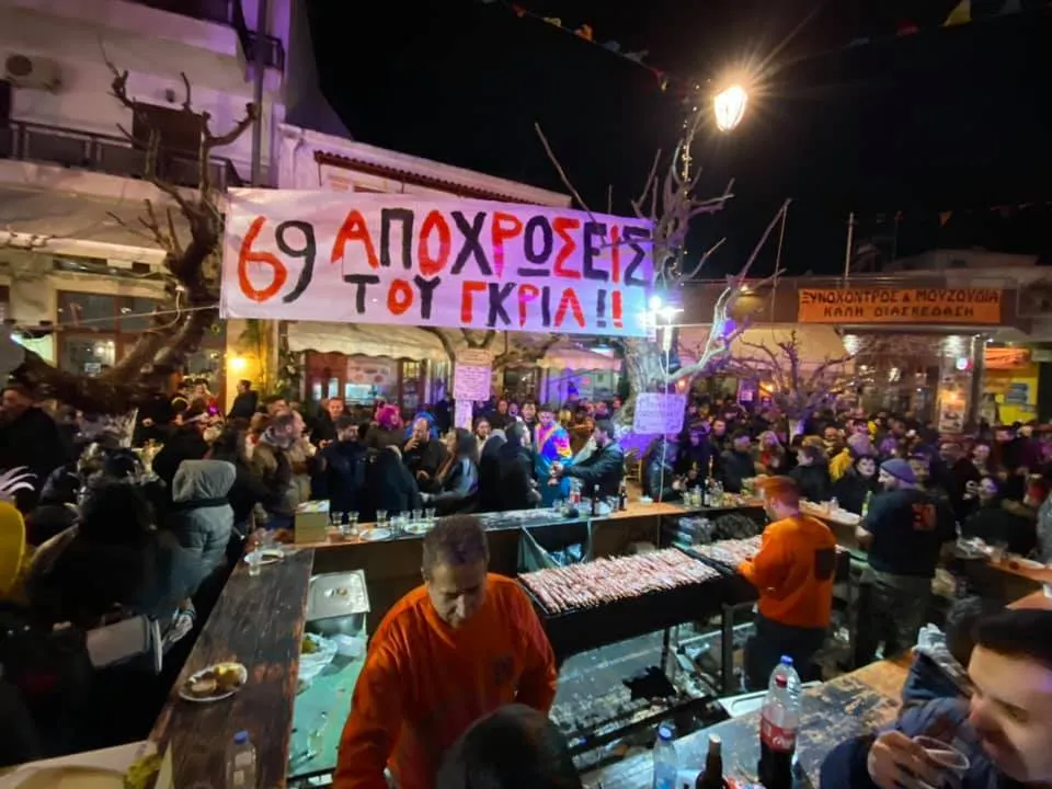 It’s the revival of a traditional local custom, “Xynochondros and Mouzoudia,” and it takes place on the Saturday of the second Carnival week, organized by the Cultural Association of the village. The 2026 edition is already on the calendar.