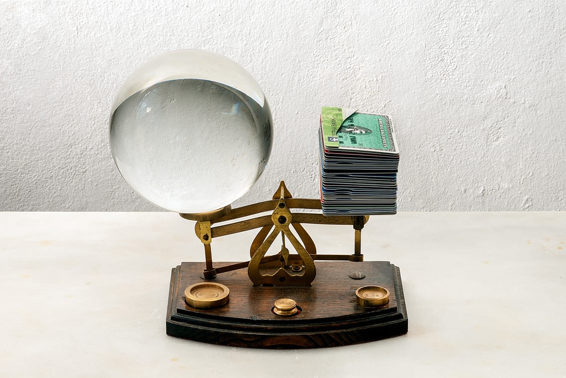 Από το έργο του 2008 «1.330 γραμμάρια φαιάς ουσίας που συνοψίζουν την ιστορία της ανθρωπότητας, τα πάθη και τις αμφιβολίες της» – μια εκτύπωση τύπου λάμδα με μαύρο γραφίτη σωρευμένο σε ξύλινο τραπέζι, που θέτει το φιλοσοφικό ερώτημα «τι είναι πραγματικό και τι ψευδαίσθηση» – έως το ολοκαίνουργιο «Άτιτλο» (2025), όπου τοποθετεί στον έναν δίσκο της ζυγαριάς μια γυάλινη σφαίρα–υδρόγειο χωρίς χώρες και στον άλλο 37 πιστωτικές κάρτες, ως σχόλιο στους μηχανισμούς του όψιμου καπιταλισμού και την εξάρτηση από το «πλαστικό» χρήμα στις δυτικές κοινωνίες, οι επισκέπτες καλούνται να μυηθούν στο εικαστικό της λεξιλόγιο και στους διαχρονικούς της προβληματισμούς.