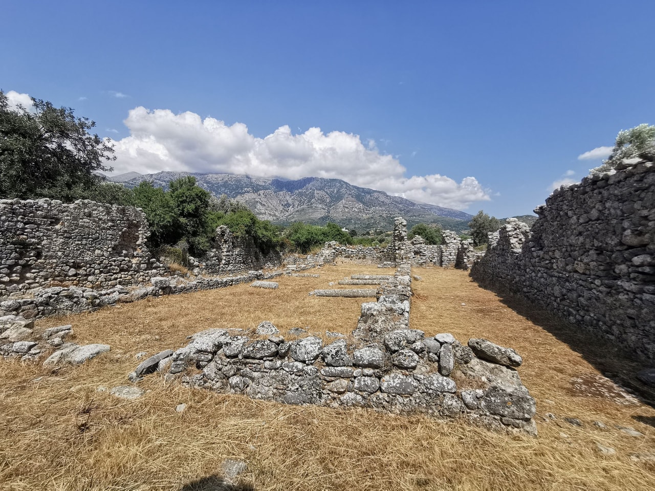Η παράδοση αναφέρει πως ήταν αφιερωμένη στην Παναγία και τους Άγιους Βλάσιο και Θεόδωρο και καταστράφηκε κατά τις αρχές του 9ο αι. από τους Σαρακηνούς.