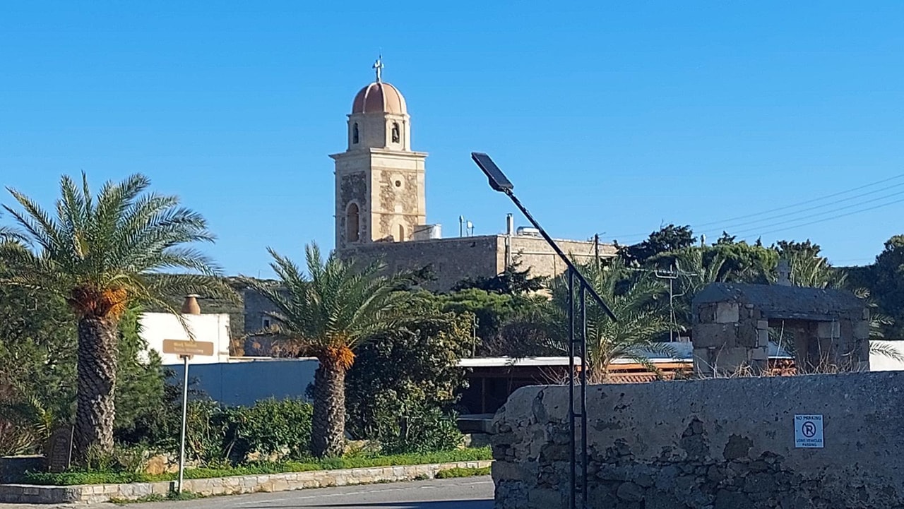 Η είσοδος βρίσκεται 200μ. δυτικά της Μονής Τοπλού. Το τοπίο ξαφνιάζει τόσο με την χλωρίδα, με την ύπαρξη συστάδας με το φοίνικα του Θεόφραστου Phoenix theophrasti, συστάδων με χαρουπιές Ceratonia siliqua, πικροδάφνων Nerium oleander, σχίνου pistacia lentiscus και αγριελιών Olea europea ssp silvestris.
