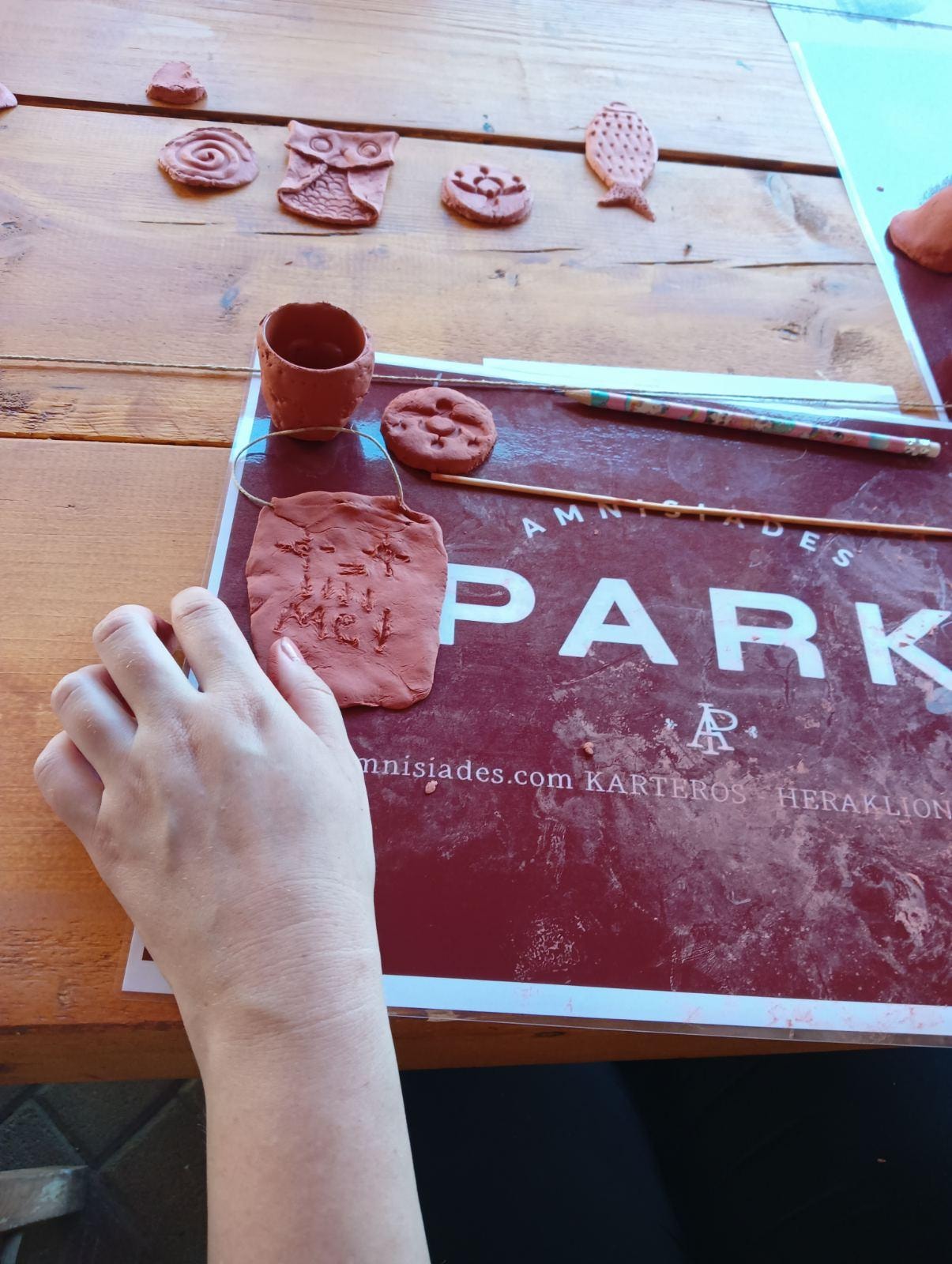 Εξερευνήστε τη μαγεία της κεραμικής τέχνης στο Amnisiades Park! Στο μοναδικό μας εργαστήριο, έχετε την ευκαιρία να πειραματιστείτε με τον πηλό και να δημιουργήσετε μοναδικά έργα τέχνης με τα χέρια σας, χωρίς την ανάγκη τροχού ή καλουπιών.