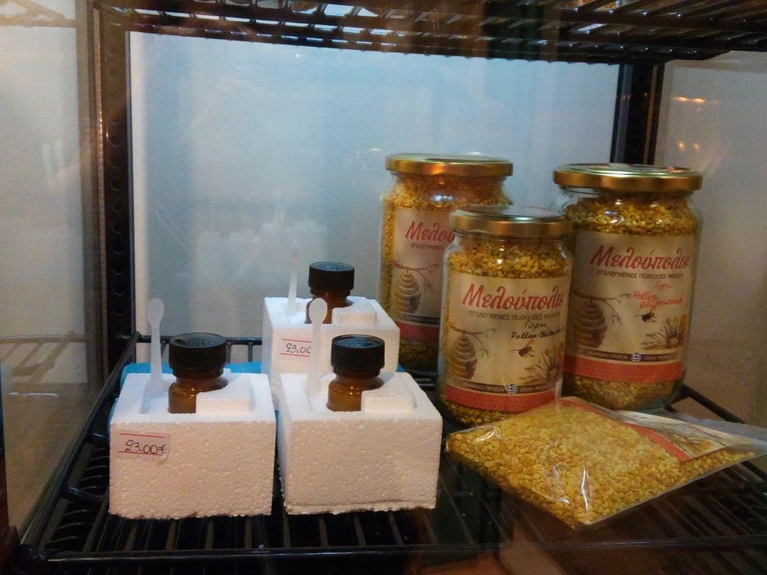 Το κατάστημα διαθέτει μεγάλη ποικιλία από προϊόντα μέλισσας: γύρη, πρόπολη, βασιλικός πολτό, κεραφοιφή , κερί μέλισσας και spread.