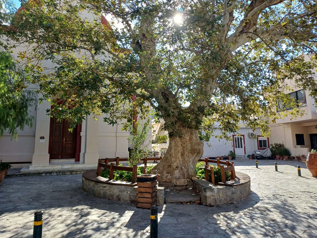 When the Turks arrived in Viannos, they destroyed the church’s frescoes and converted it into a mosque. Shortly afterwards, they built a minaret in the courtyard, incorporating the ancient columns from the temple of Ares into its balcony.