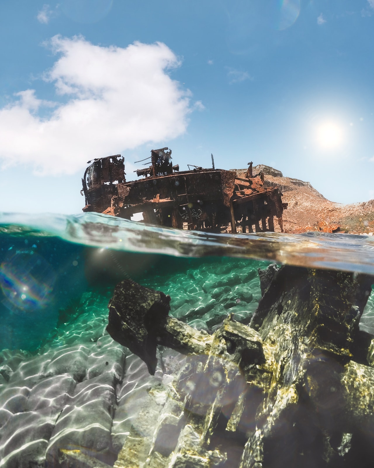 The splendid Gramvousa Beach boasts crystal-clear blue waters and is adorned with tamarisk trees that provide shade to those enjoying the sun and sea.