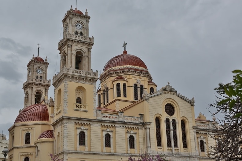 The right aisle is dedicated to St Titus and the left to the Ten Martyrs of Crete.