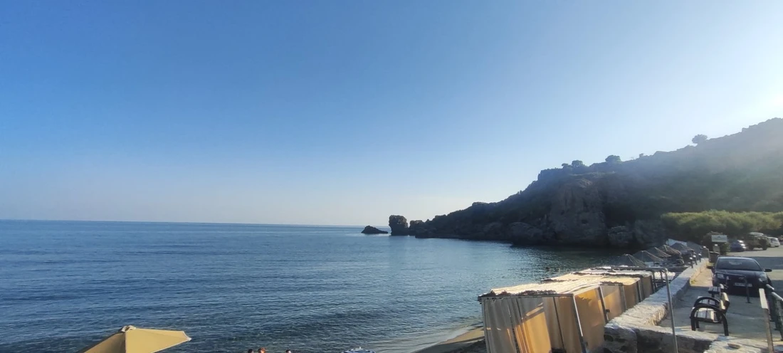 Polyrizos Beach is a peaceful, shallow, and sandy beach, providing a serene setting for relaxation. During the summer months, the beach is equipped with parasols and sunbeds, and there are also nearby tavernas where you can enjoy a meal or refreshments.