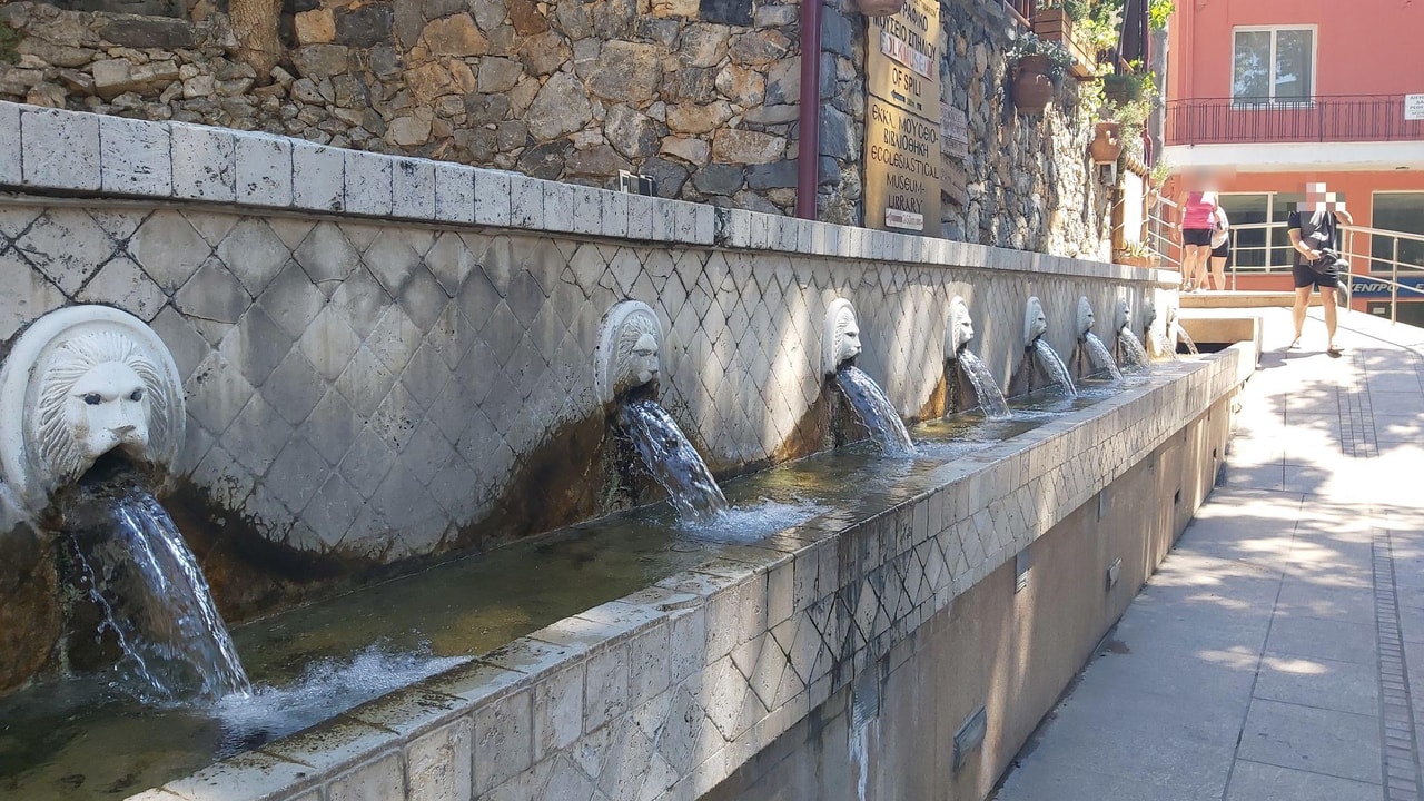 In the village square, a prominent feature is a fountain adorned with 25 lion-headed spouts, through which water flows throughout all seasons of the year.
