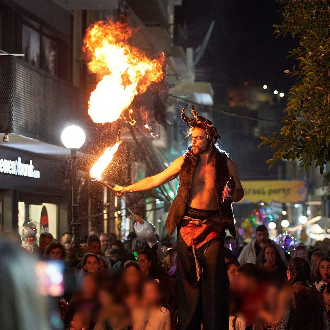 Following that, there's the Children's Treasure Hunt and plenty of ‘tsiknisma’ (aroma of grilled meat), along with raki and cauldrons filled with 'rakomelo' (honey raki) on Tsiknopempti (Barbecue Thursday)!
