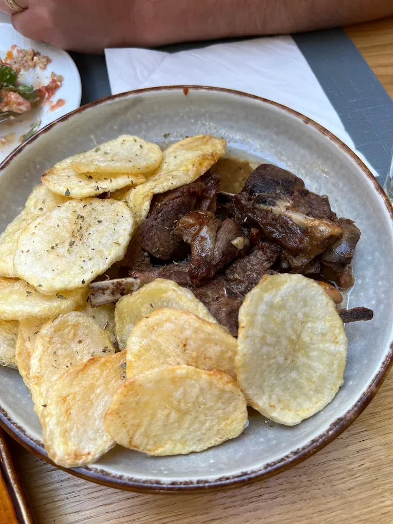 3rd stop: Main course with traditionally cooked meat and salad, paired with selected local wine