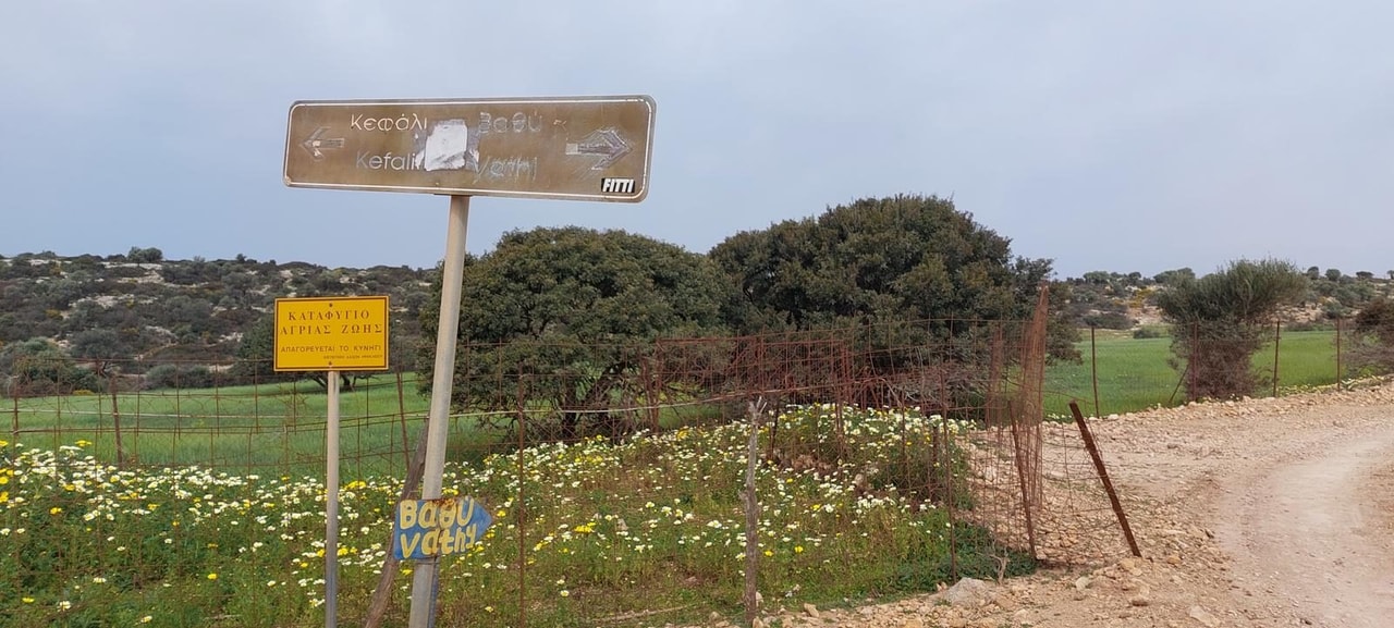 Exiting the narrow gorge and passing by the houses, we ascend along the unpaved road towards Mt Kefali at Cape Lithino.
