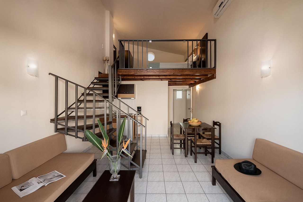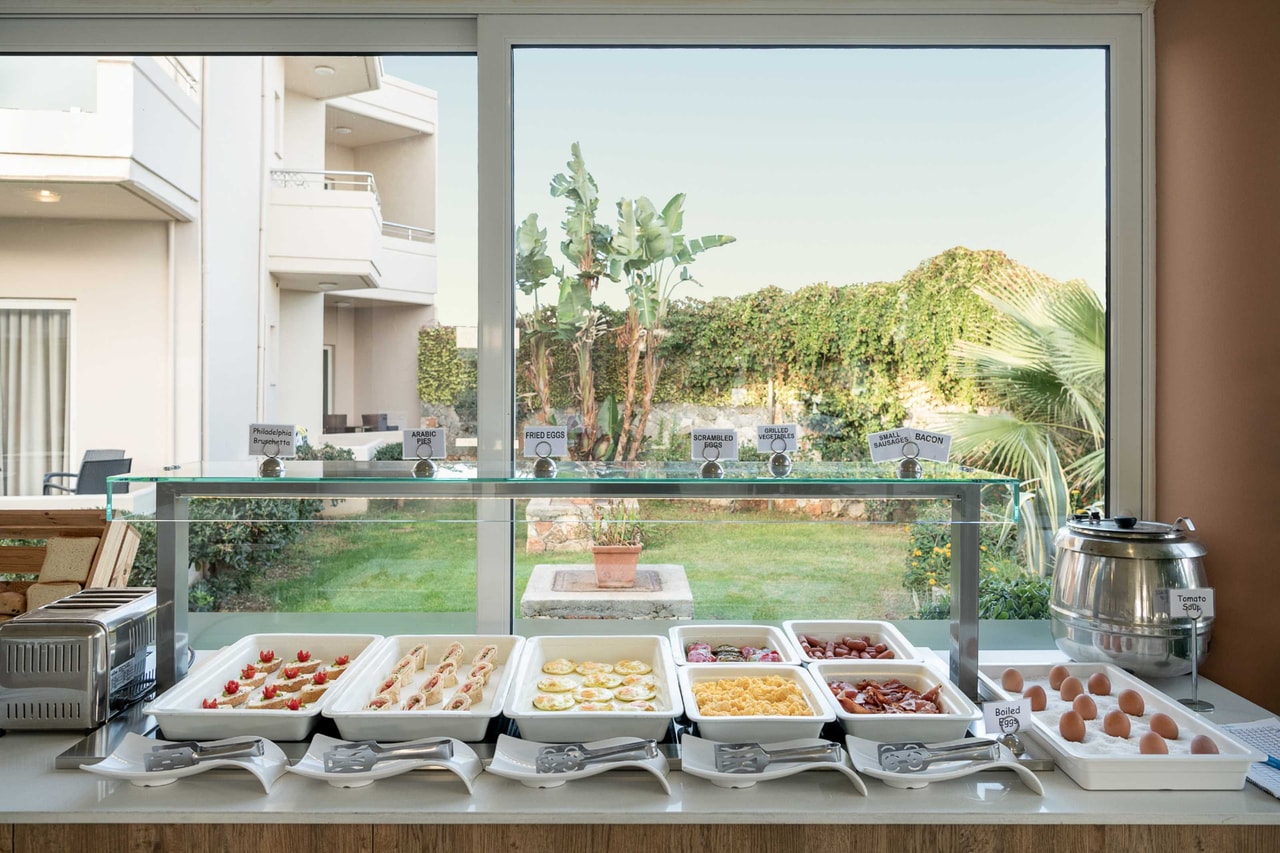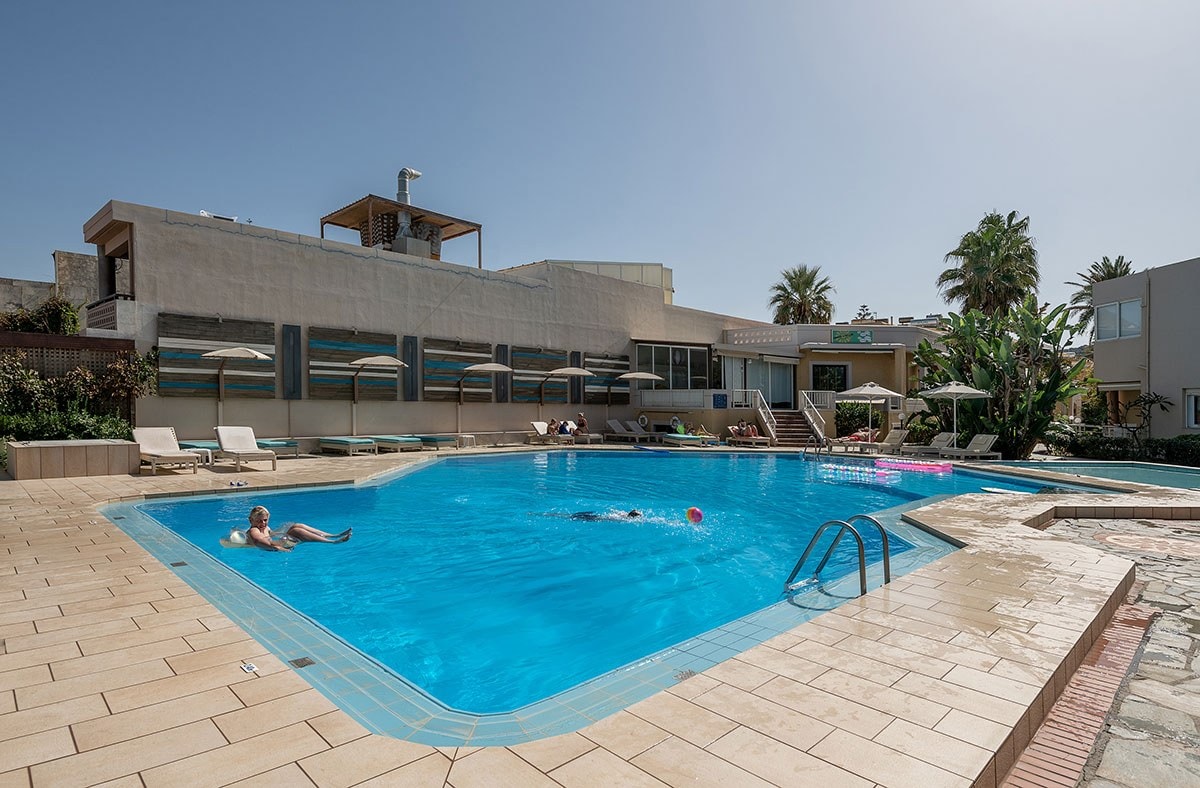 On the premises you will also find an outdoor pool literally by the sea along with the pool bar restaurant, so you can have everything you want from the comfort of your sun lounger! Feel a sense of wellbeing with the massage services and the indoor gym area and have fun with entertainment shows and Cretan nights with a live dance programme.