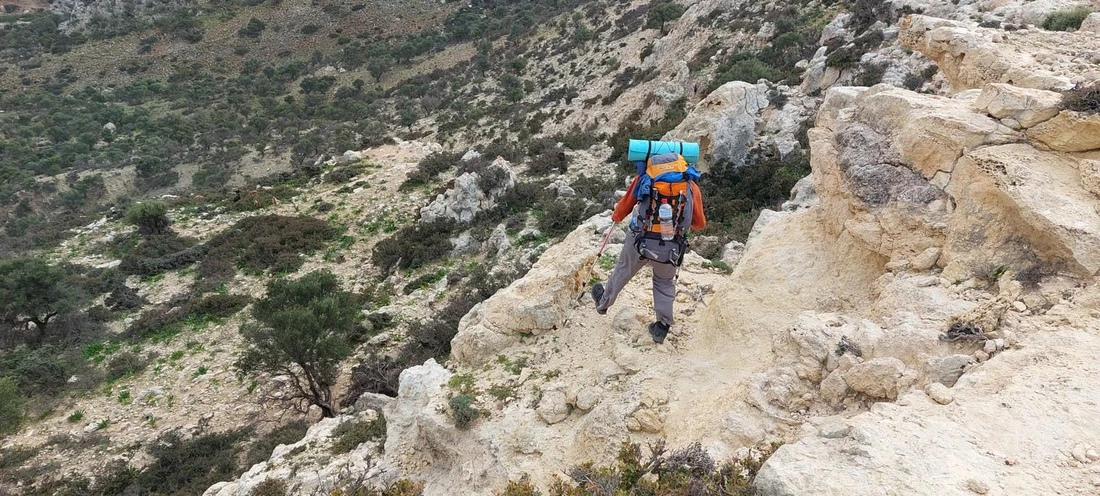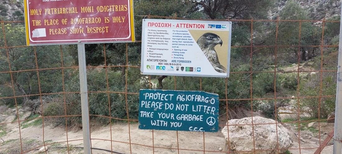 Climbing up the mountain ridge, the route leads to Agiofarago Gorge.