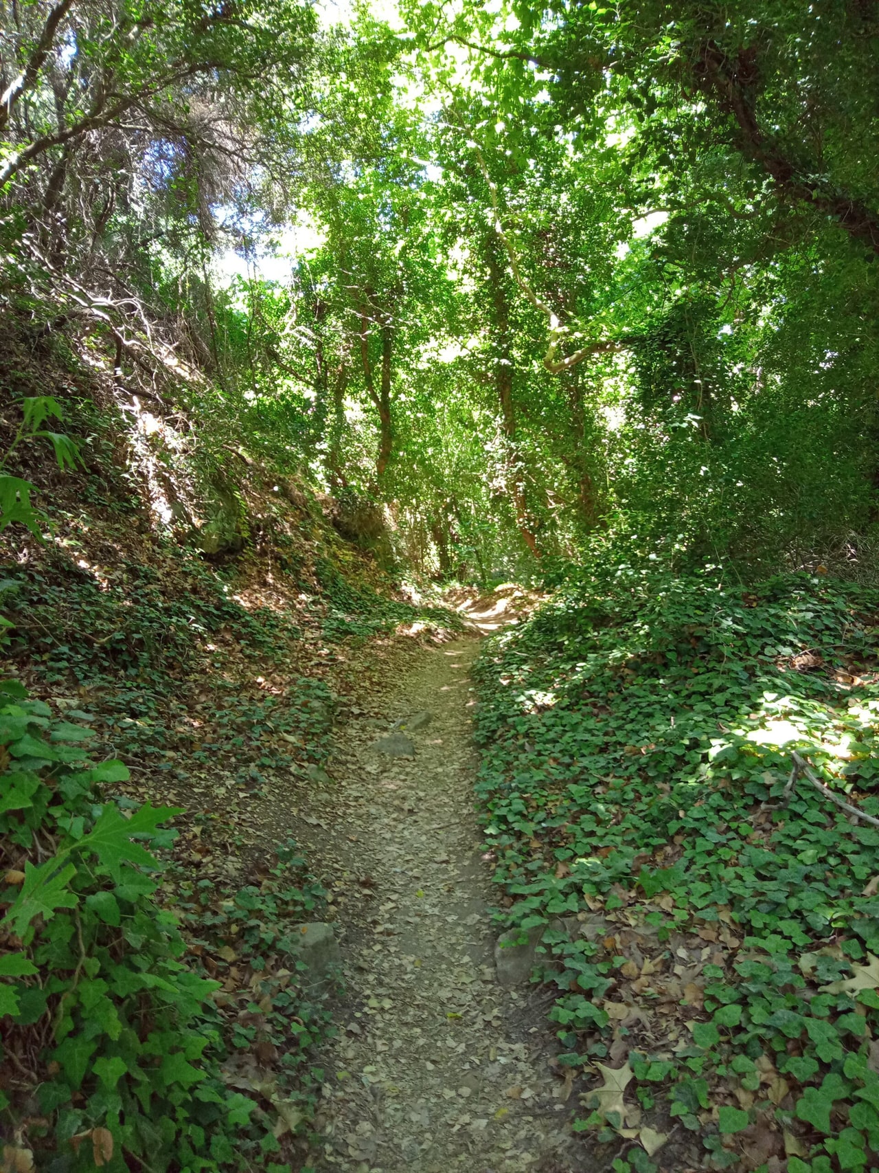 The journey commences from the car park alongside the main road, following a cement road that leads to the picturesque stone arched bridge of Lachanas. Beyond the bridge, the road comes to an end, and a captivating path unfolds, accompanying the river and meandering through a lush and verdant landscape.